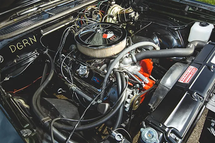 The car was built at Chevrolet’s Baltimore plant, and is a well-optioned Yenko. It has the correct 15×7-inch Rally wheels and Goodyear Polyglas F70-15 tires. These came as part of COPO code 9737 (Sports Car Conversion). Because of code 9737, it also received heavy-duty sway bars. Under the hood is the numbers matching L72 427 with 425 horsepower, backed by an M21 four speed with a Hurst shifter. The car also has a bench seat with cloth interior—an option not often seen on four-speed cars. Finally, there are power front disc brakes, 4.10 gears, and a Yenko-installed Stewart-Warner tach in place.