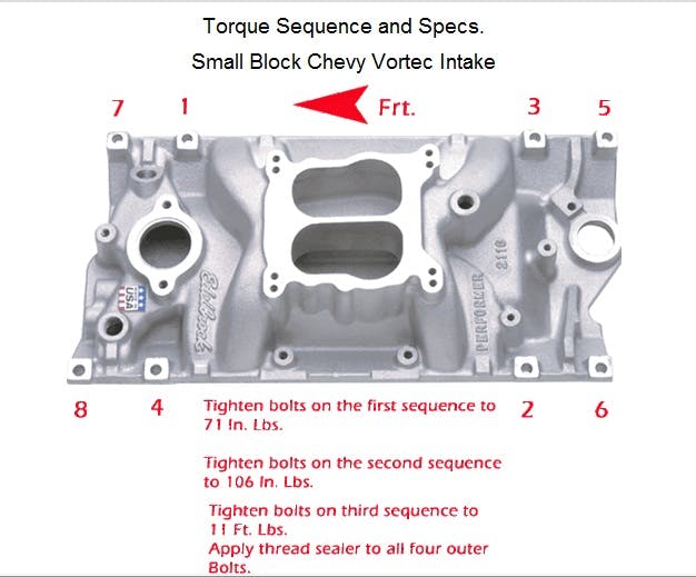 In the Torque Sequence and Spec how-to, you can find small-block and big-block Chevy engine specifications, cylinder head tightening sequence information and recommended torque measurements. There are also images provided to help illustrate proper torque sequences.