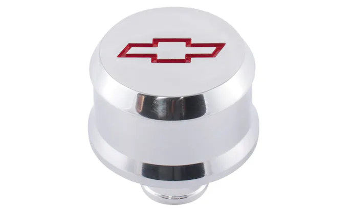 New Chevrolet Performance Slant-Edge Breather Caps showcase the iconic Chevrolet Bowtie in vivid 3D. Various emblem configurations include raised precision CNC milled Bowties, as well as recessed with inlaid paint; even the unique Blackfield with raised Bowtie is available. Choose from five finishes including the ultra-popular Black Crinkle, the signature Chevy Orange, and of course, chrome so lustrous it looks like it is wet to the touch! Add these Slant-Edge Breathers to a set of Slant-Edge valve covers and air cleaner you already have, or add a small touch of added cool under your hood. Also available without emblems in a polished, chrome, and Black Crinkle finishes for those looking for a subtler look.