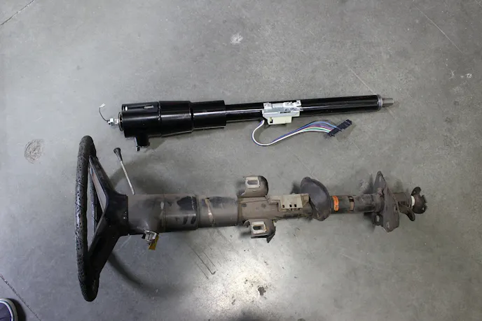 In addition to needing a steering column that we could hang onto during hard cornering, we wanted a brand new column that didn’t have worn out bearings and slop in the steering wheel.