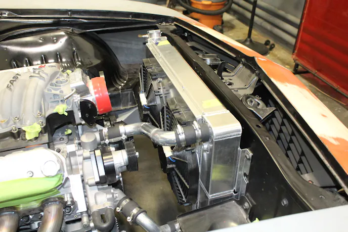 The folks at AFCO got us hooked up with AFCO’s aluminum radiator (Part #84251-S-DS-N) combined with the accompanying aluminum shroud with dual electric fans (Part #84251-F-DS-N) which make for a very efficient cooling system that stands up to the many demands of modern combustion techniques.
