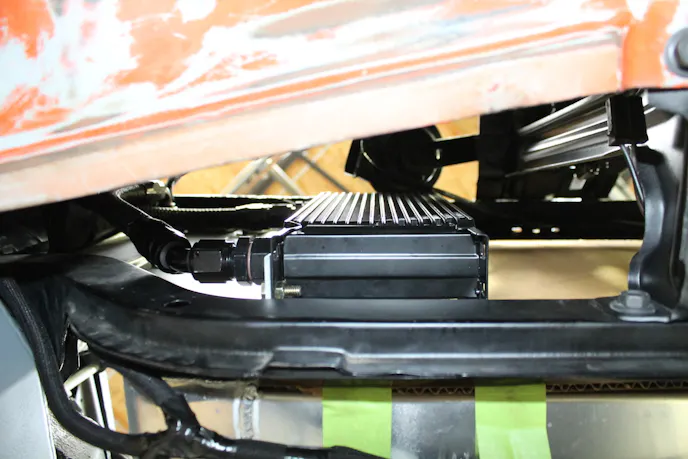 When it came to the hoses and fittings, we selected Earl’s. Armed with 12-feet of Earl’s Pro-Lite 350 AN-12 hose (part #352012ERL), 20-feet of Earl’s Pro-Lite 350 AN-10 hose (part #352010ERL) and several Earl’s AN-10 and AN-12 fittings, we plumbed our system. For a final touch to the oil system, we added Derale Performance‘s dry sump oil cooler kit (part #15451) to keep things cool.