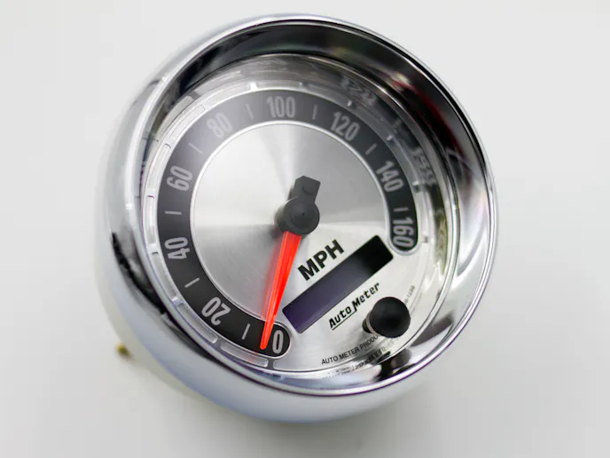“Versatility is the primary advantage,” Wambold told us. “A mechanical speedometer is cable driven by a gear inside the transmission. That means when you install a new speedometer, it will have the same output you had with the old one – whether it was correct or not.” An electronic speedometer reads electrical pulses from the transmission sending unit, as opposed to a cable to the transmission gearing. These pulses are converted into miles per hour for the readout, this type of communication between transmission and speedometer is important because it helps correct discrepancies that come out of different tire and wheel combinations, or an altered rearend gear ratio. “The electric speedometer has a calibration circuit built in that allows the user to calibrate the speedometer to show the correct speed.”