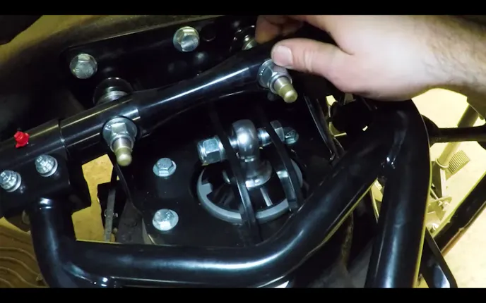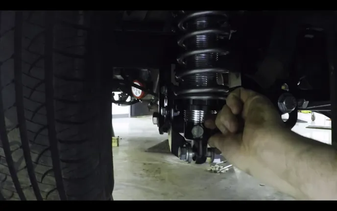The guys are almost done with their adjustments, but still need to do set the Panhard bar, which you just want to make sure is level with the truck at ride-height, and then level the sway bar. The final adjustment is shock valving.