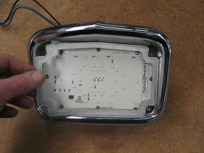 First, let’s talk about basic LED light-bulb replacements. These are a simple and inexpensive plug-and-play “bulbs.” To use them, simply remove the old bulb and install the new LED bulb. Although this is a quick and easy way to upgrade, it is also the least effective solution to the problem. Why, you ask? The area in which the “bulb” can occupy is limited by the taillight assembly. That means the size and number of LEDs utilized are considerably less than a conversion card or solid-state taillight lens. This makes LED bulbs the least visible of your options. While an LED “bulb” is an economical solution, it is not as effective as the other options.