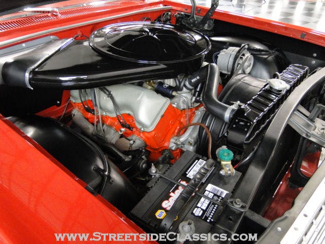 The 409 under the hood has some obvious visual cues that separate it from it’s stock brethren, mainly in the form of the NASCAR style cowl duct on the air cleaner.
