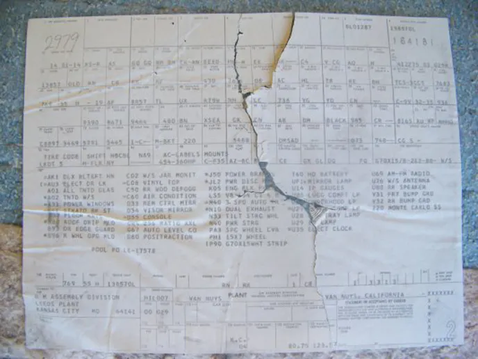 A well-optioned car, it originally included power windows and locks. Dan’s Monte Carlo was built in Van Nuys, California, and shipped to Pappas Chevrolet in Kansas City, Missouri, where it was sold in June of 1972 to the first owner who kept the car until 1995.