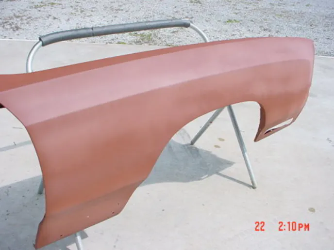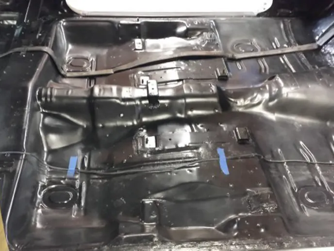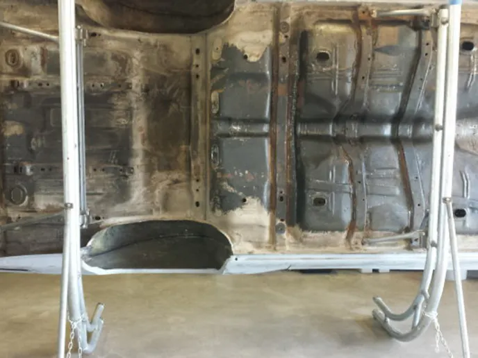 Dan has also stripped, cleaned, and painted the floor, and had the frame powdercoated. A problem arose when he went to put the body back on the frame. When he put the doors and fenders back on, he found that there was a ¾-inch gap where the core support and the fenders needed to bolt together. “I bought this frame several years ago from a guy in Iowa that had taken it from a parts car he had bought,” Dan explained. “I’m guessing the car had been off roading at some time.”