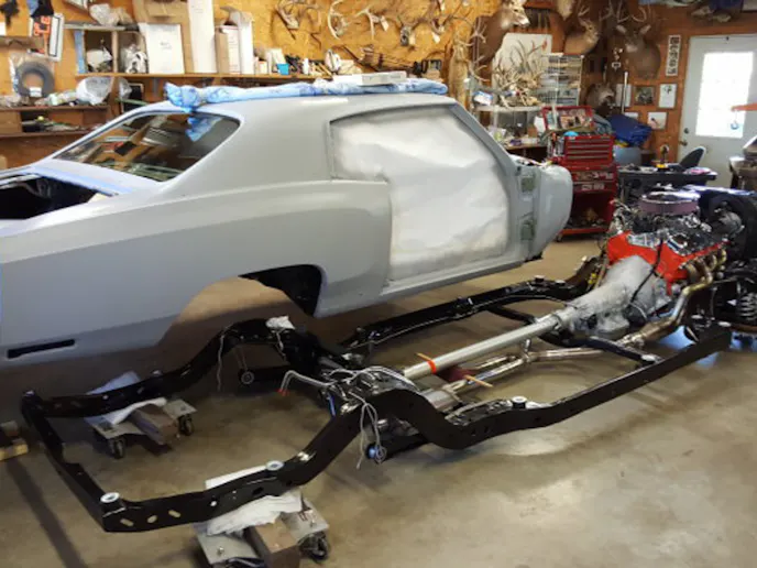 Dan has already completed a lot of work on the car. He has already restored the interior, the frame, the suspension, and rebuilt both the engine and transmission. The 454 cubic-inch big-block and transmission are ready to go.