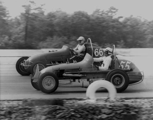 Al Chamberlain (#55) and Dave Humphrey (#66) in 1960. Photo from {link=https://www.jalopyjournal.com/forum/showthread.php?p=4376549}jalopy journal.com{/link}