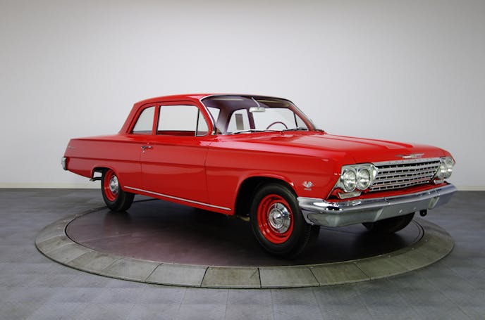 Though the car, once an affordable street fighter that could be refueled at any pump, is now as astronomical in price as it is in performance, it is still an original 409-powered specimen which is restored to show standards and is more than well-documented. A clean sleeper with plenty of evidence to back its own history, this 409/4-speed Biscayne is a super-stock, dealership floor race car that can be touched by very few.