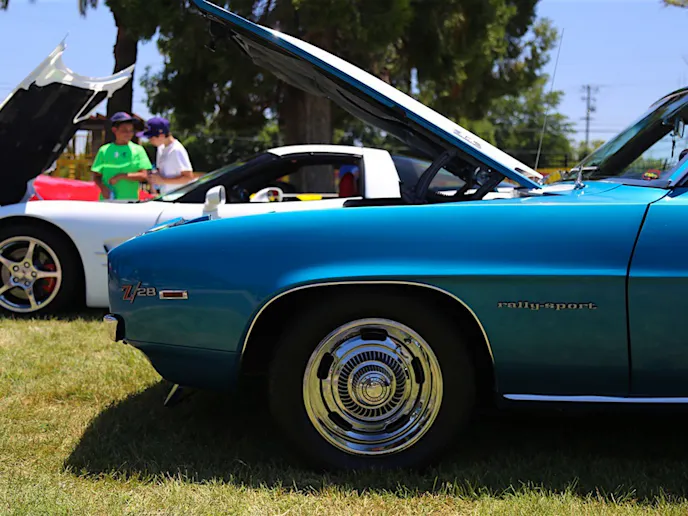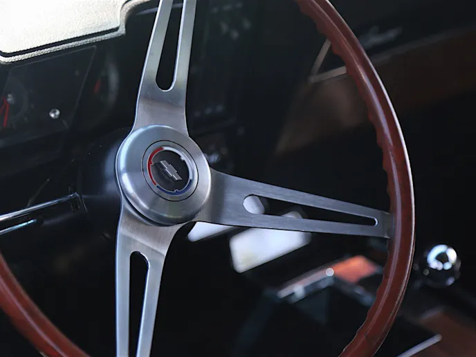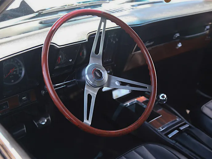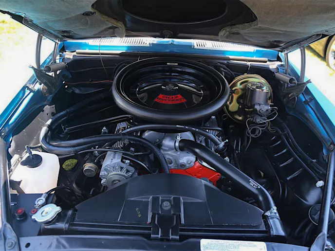 Not only does this car utilie the 11.0:1 compression DZ302 cubic-inch engine, but behind that is a Muncie M-21 transmission, followed by a 12-bolt rearend with 3.73 gearing. Other than the headers, the engine is completely original, and the car rides on factory Rally wheels with B.F. Goodrich tires.