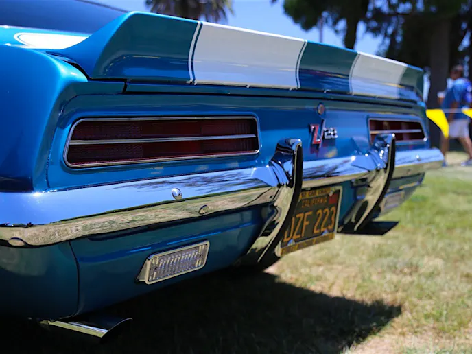 This particular Z28 was built at the Van Nuys, plant, and came off the line on September 4th, 1968. Along with the combination of RS and Z28 packages, it has a couple of unique options, like a speed warning indicator and optional fiber optic lighting. The speed indicator is an adjustable dial on the speedometer that will buzz if you hit the selected speed, and the fiber optic is a much more unusual option that uses a fiber optic cable going to the headlights, driving lights, and tail lights, and it shows the driver when the lights are on.Only 1,463 Camaros came with the fiber optic lighting option out of the 245,000 built. That makes this one rare gem.