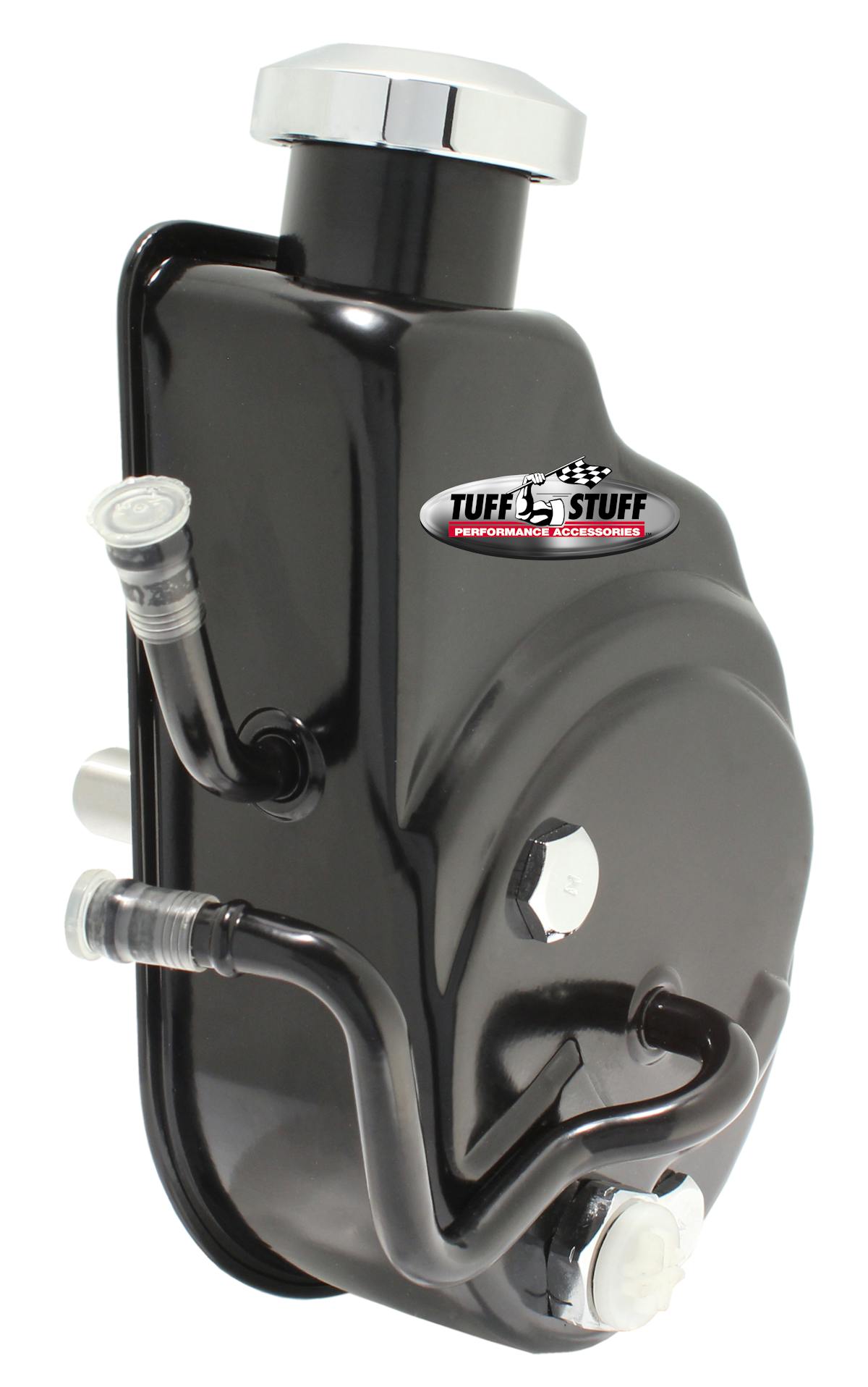 The pump/reservoir assemblies are available in either chrome plating or Stealth Black powdercoat. These pumps have a ¾-inch OD shaft for use with a press-on pulley. They also have a factory 5/8-18 inverted flare pressure port and two 3/8-inch OD return tubes. The new-and-improved pump reservoir is made from 20-gauge cold-rolled steel and is furnace-brazed for premium quality. Pumps are rated at 1,200 PSI at 3 gallon-per-minute, feature all new components, and include a chrome-plated billet-aluminum cap and dipstick. These power steering pumps will also work on any custom-built project equipped with aftermarket hydroboost brake system. All Tuff Stuff power steering pumps are built in Cleveland, Ohio.