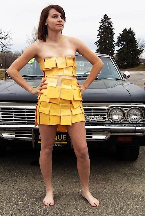 One super unusual thing theChive found, was women wearing cheese dresses, posing with classic cars. They all appear to be wearing dresses constructed out of single slices of cheese, instead of hollowing out a block of cheese.