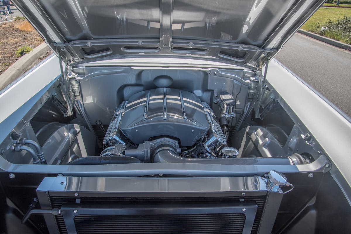 No longer a stripped-down model, this 150 is anything but plain. The body sits on an Art Morrison GT Sport chassis, and has a 485 horsepower, LS3 engine nestled between its silver fenders. The transmission is a Tremec TKO five-speed manual, and it has a 9-inch rearend to complete the drivetrain. Overall, a significant leap from the old Stovebolt six-cylinder engine and three-on-the-tree transmission.