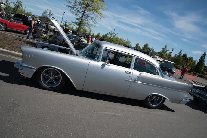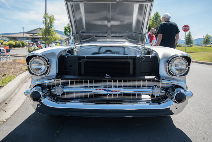 “The reason I chose this car, is because it’s an oddball,” Pat said. While there are plenty of ’57 Chevys out and about, they’re mostly Bel Air models, wagons, convertibles, or the 210s. The 150 is the least common model, and they also have unique trim. One guy even thought that Pat had ’55 Chevy side trim put onto his ’57 Chevy, not knowing this was how the 150 model looked from the factory!