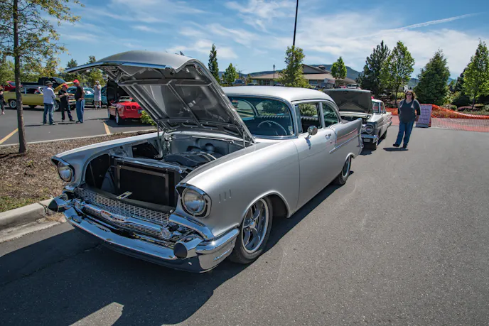 This 150-series two-door ’57 Chevy was built by Roy Brizio in South San Francisco, California, in 2013. It belongs to Pat Liebel of Sequim, Washington. “The 150-model was as cheap as you could get,” Pat explained. “This car started with a six-cylinder engine, three-speed transmission, and no clock, radio, pr heater.” This was a low-option car, even for the 150-trim level.