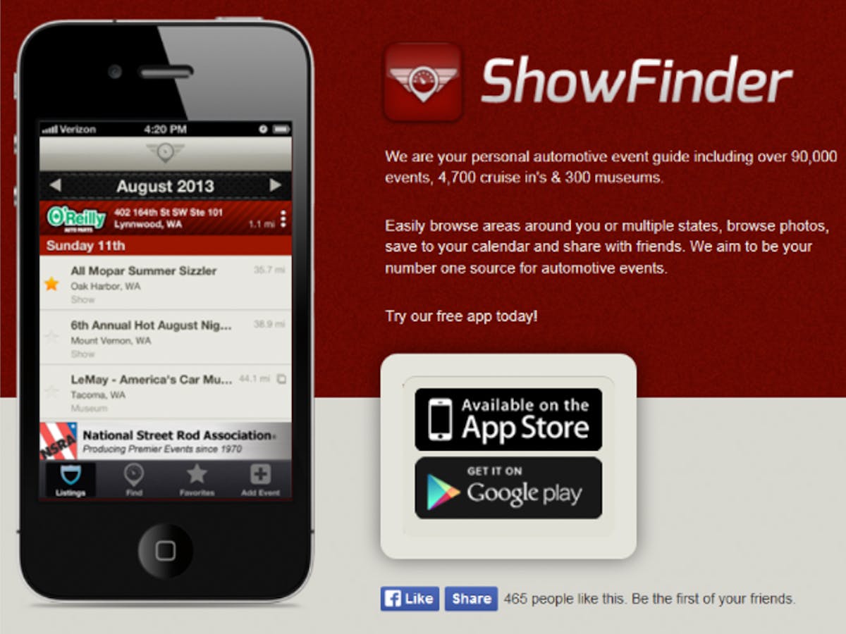 “It took sixth months to get the app ready to go,” Tapia detailed. “It was an aggressive timeline for us, because we wanted to get the app out there before the Pacific Northwest car show season started.” It took a while, but they were eventually able to secure O’Reilly’s as a sponsor for the app, and they are still looking to “team up with any other brands to help better inform car enthusiasts seeking event info,” Phil told us.