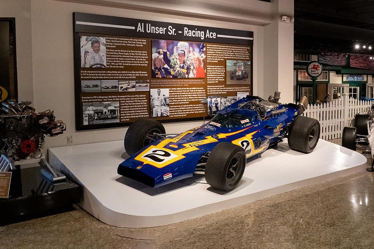 The Speedway Motors Museum of American Speed is currently home to the Johnny Lightning Special and Viceroy VPJ Special driven by Al Unser, the 1971 Gurney Eagle driven by Bobby Unser, along with other vehicles and engines significant to the family’s racing history.