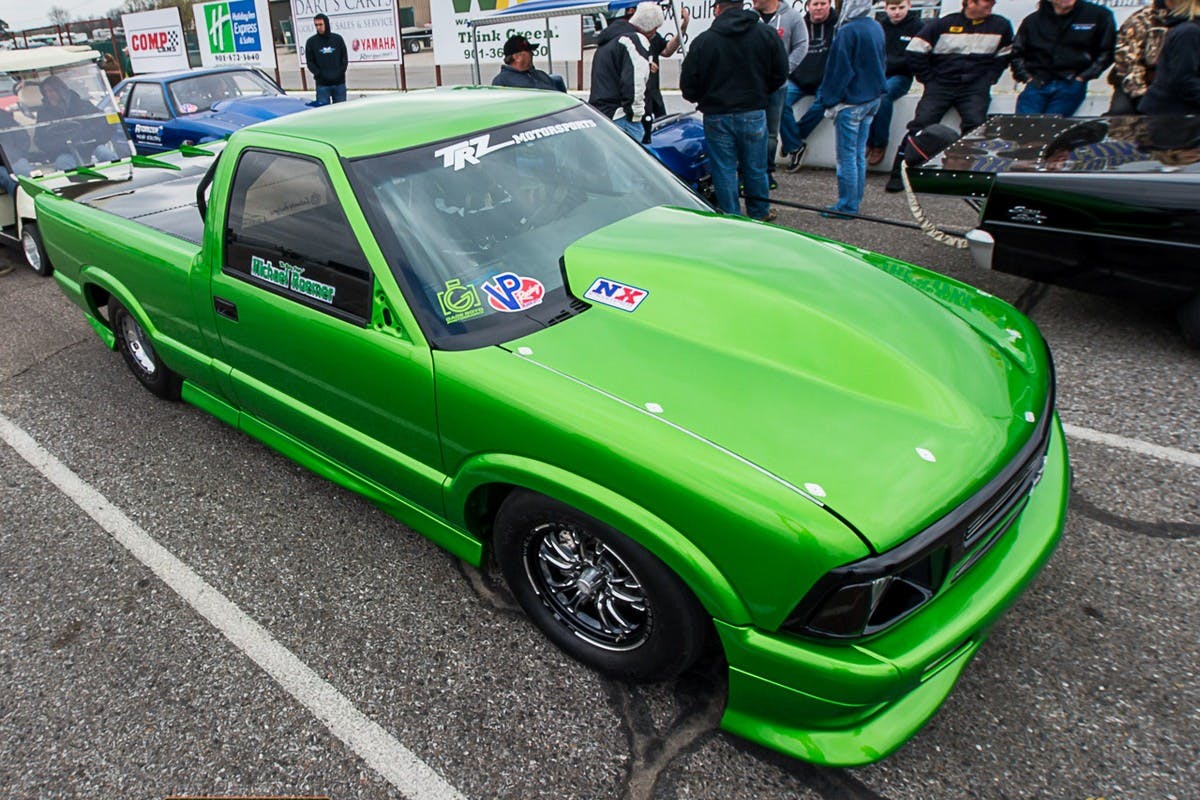 Case in point is Michael Roemer’s 1994 S10. When VP Racing Fuels’ “Pooch” saw the truck in action, he nicknamed the truck, the Flying Pickle. “Pooch” races in the drag radial class, and is actually VP’s Regional Manager, Jason Rueckert. “The truck has a tendency of doing wheelies,” Michael says, and that’s how the truck became known as the Flying Pickle. Michael chose the retina-searing color in memory of a close friend who passed away after a car accident. “Her favorite color was green,” Michael says. “She never experienced going to watch a race, but now she rides with me every pass.”