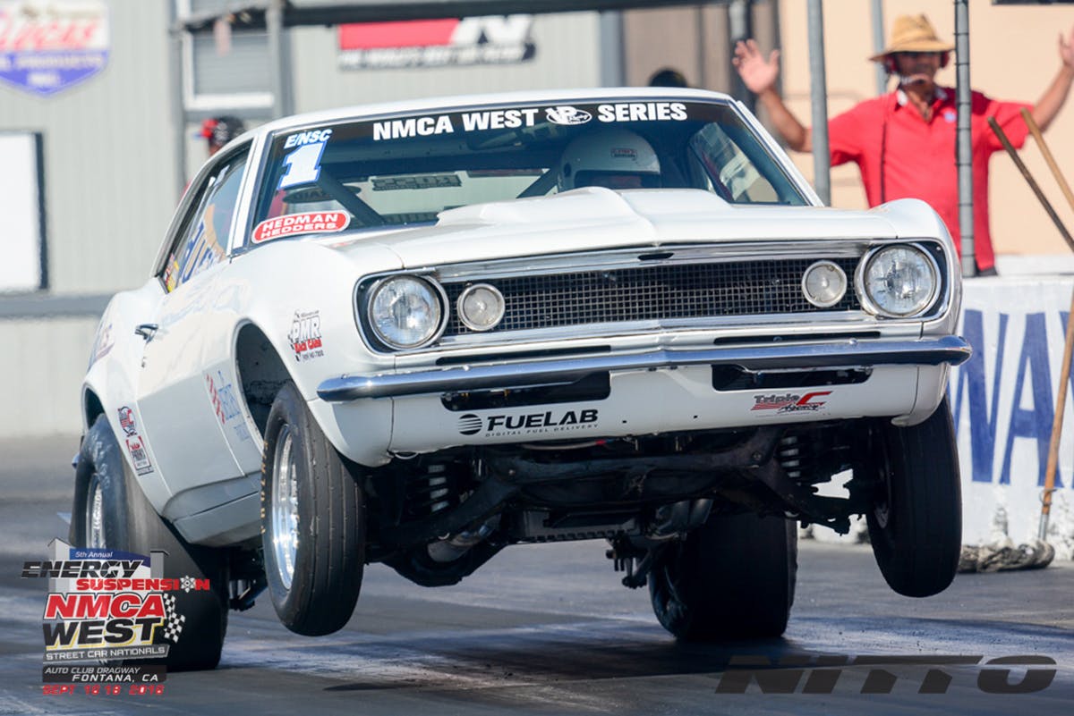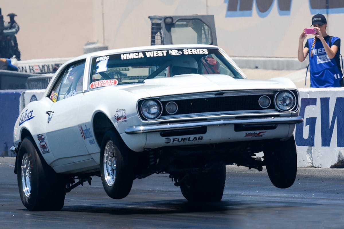 Steve Cox behind the wheel of his 1968 Camaro powered by 383ci Dustin Lee-built small-block at an NMCA West event in Fontana, California. Photo provided by Steve Cox