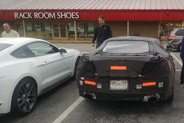 Chevrolet keeping things a buzz building hype in the impending release of 2016 Camaro, the American automaker continuing to drop teasers was spotted just yesterday out and about for what appeared to be some possible mountain testing in Pigeon Forge, Tennessee. Courtesy of Bill Howell, a local resident, he spotted an out of place trio of highly camouflaged cars parked in the parking lot of an area shopping center. Being a car enthusiast, Howell couldn’t help but capture a few photos as he shared “Nothing like this ever happens in Pigeon Forge”.