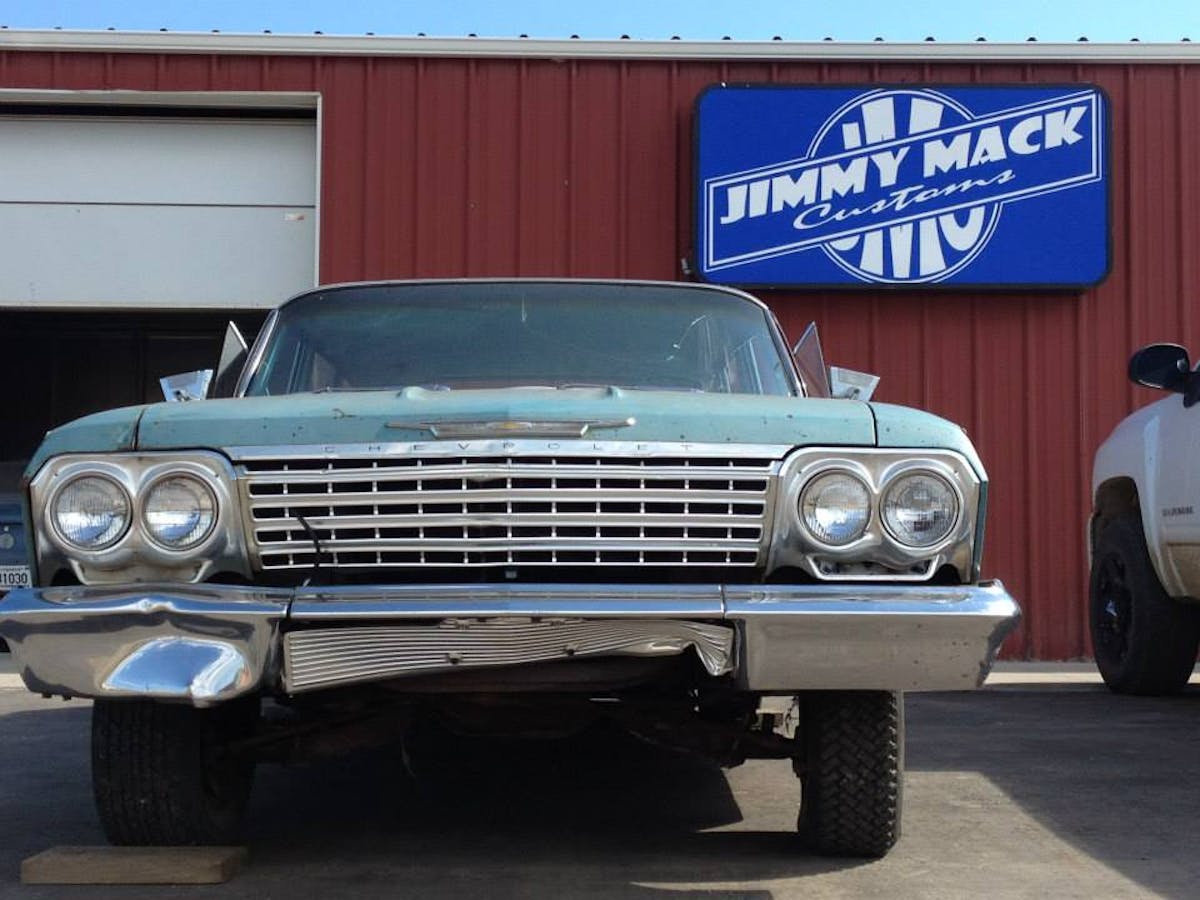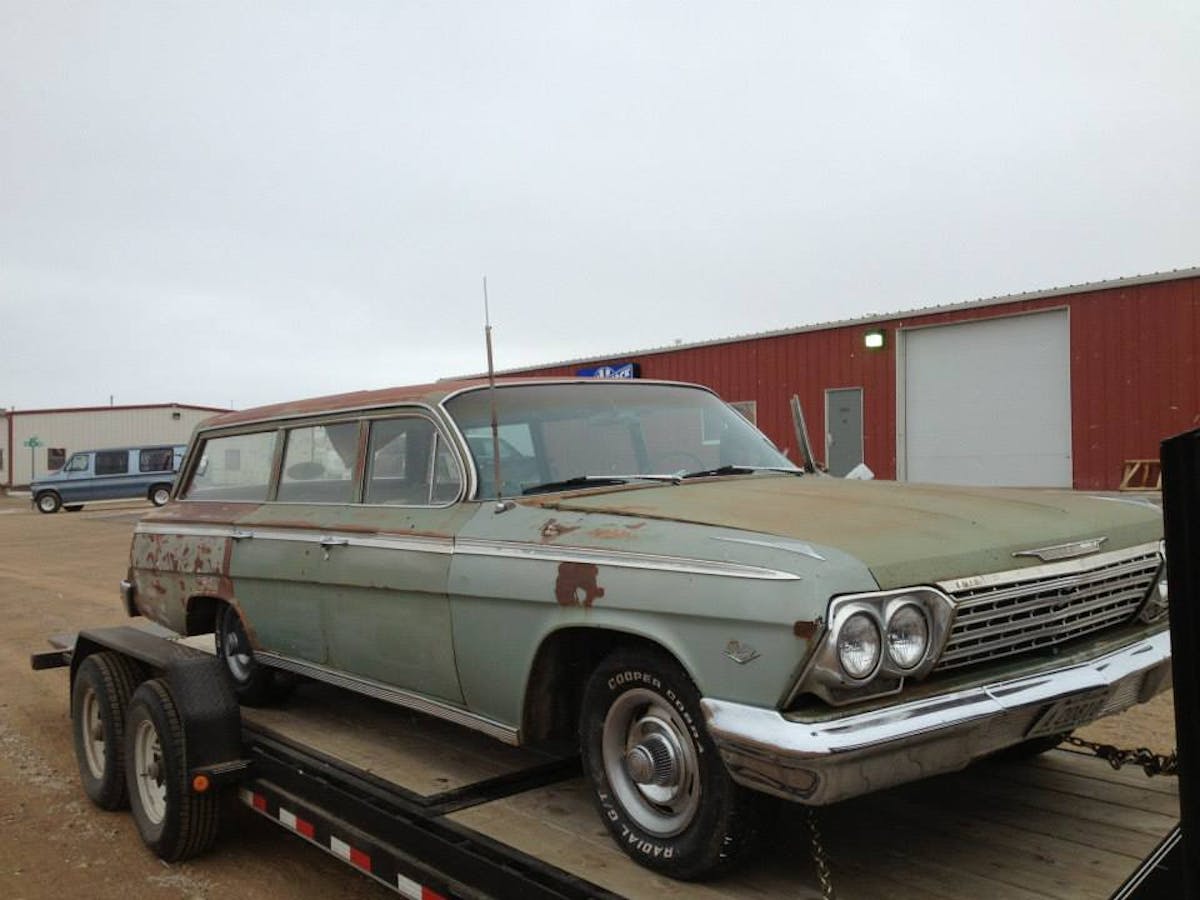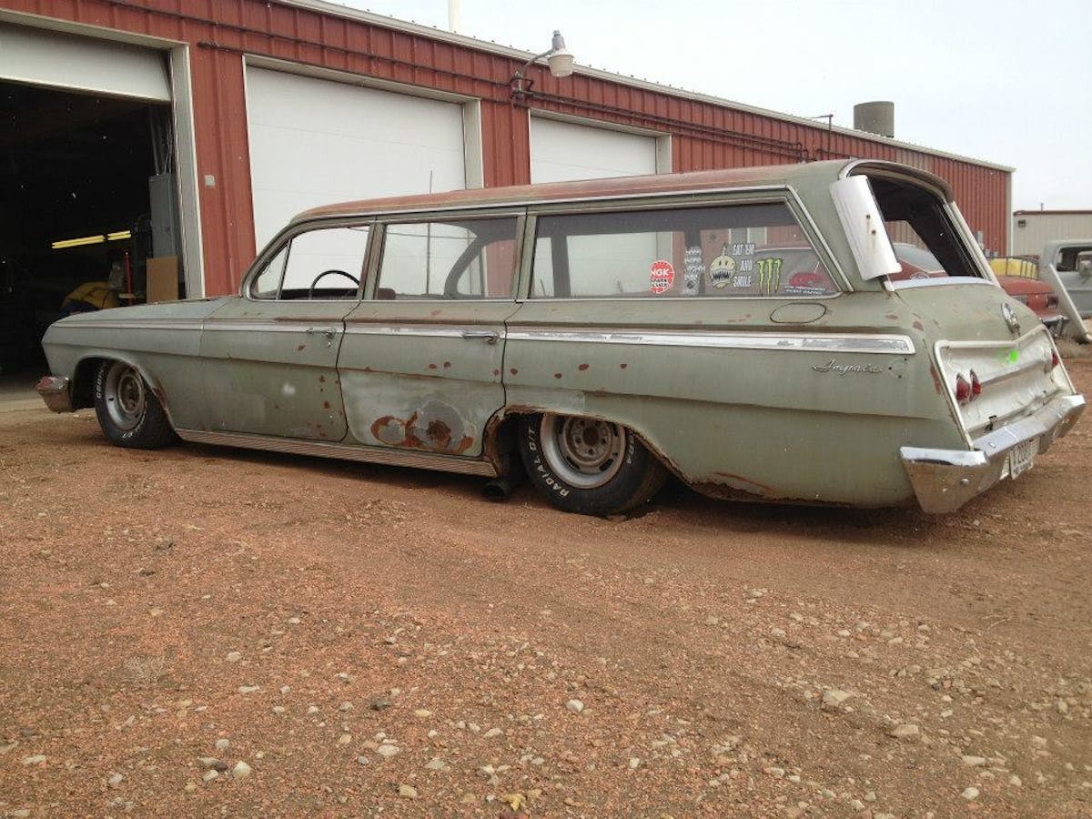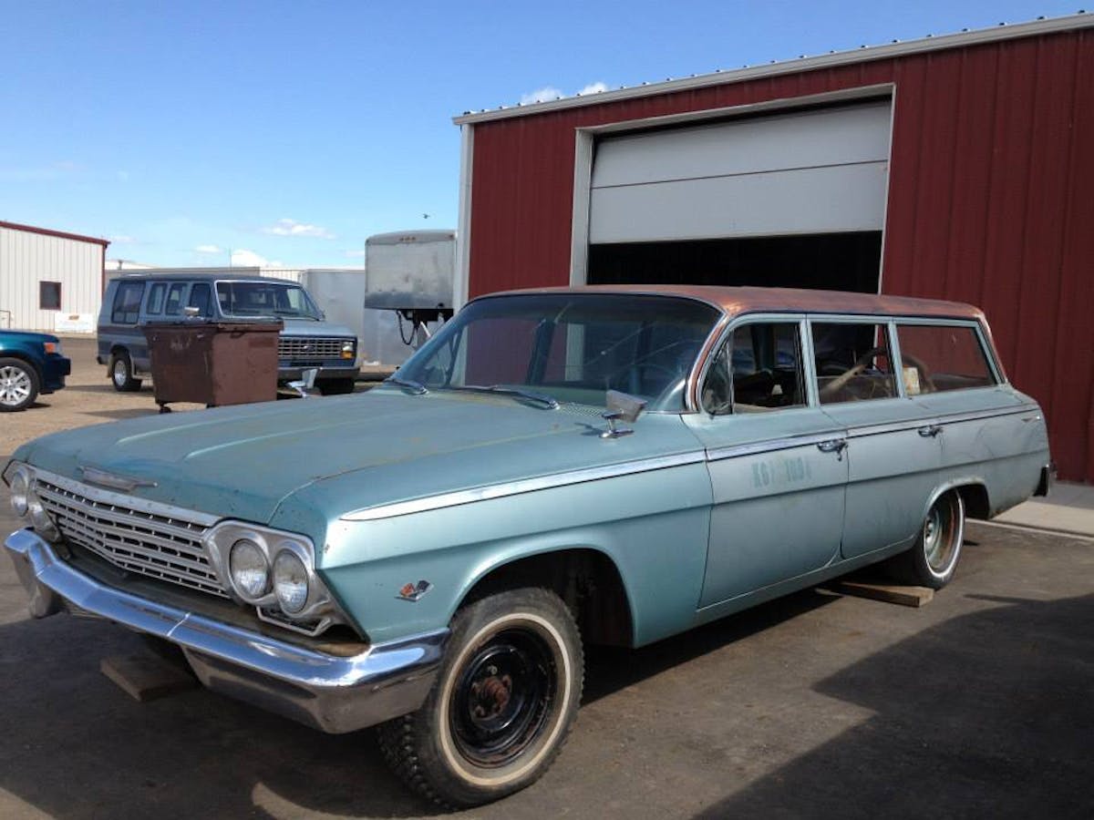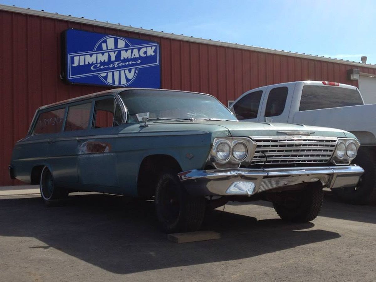 Nevertheless, there are two cars worth mentioning that have been the shop’s focus as of late. Both were made in 1962, both are Bow Tie B-bodies, and both have room aplenty for kids, pets, and cargo: the “Momma’s Baggin’ Wagon” (an Impala) and “Daddy’s Shaggin’ Wagon” (a Bel Air).