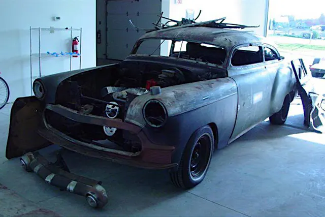 The crew is also working on a 1949 Chevy pickup. “We completely revamped the chassis, battled tons of rust, and chopped the top 2 1/2 inches,” Steve said. “We’re giving the pickup an independent front suspension with disc brakes.”