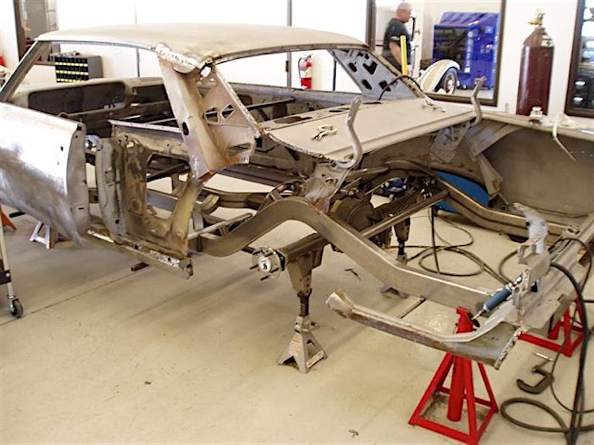 “We’ve basically grown from working in a three-car garage into the current 10,000-square-foot shop we have today,” he said. “We grew out of the 5,000 square-foot shop in just 18 months. The showroom serves not only as a place to store four cars, but also a place to put up my numerous pieces of car memorabilia. I always said I was going to do it on my own — or maybe with one other person, but the crew keeps growing and growing.”