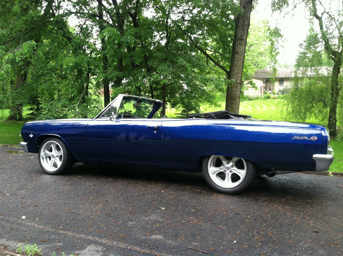 A 700R4 transmission with a 3,500 rpm stall converter was mated to the V8, as was a set of Hedman headers that flow into a custom-fabricated exhaust system with Flowmaster mufflers. As for the interior, bucket seats are used both front and rear, and a B&M shifter, Dakota Digital VHX gauge cluster, and more, make the cabin look cherry. The exterior looks amazing coated with a Dark Blue Pearl with a charcoal-hued fabric top, Foose wheels, and BF Goodrich KDW tires.