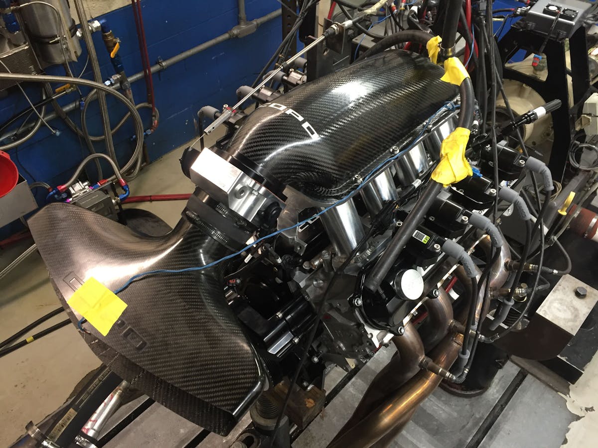 “The engine ended up going all the way up to 9,600 RPM right out of the gate, so we knew we had something. We were looking at the lambda numbers and decided to build the full race engine and that went to 10,200 RPM with no fuel delivery issues. We knew mechanically we could make an engine buzz that high, but with the direct injection there’s nobody out there that’s within 2,000 RPM of our numbers, Rinke says.
