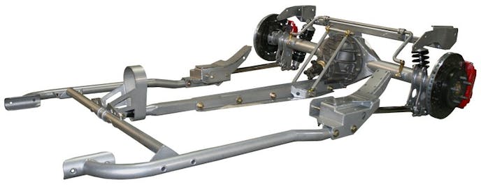 The package also comes with a bolt-on rear suspension with a rear sway bar, torque arm, single-adjustable coil-overs, sub frame connectors and 1 ¼-inch performance bars, which compliment the complete Currie 9-inch rearend with new nodular iron case, high-performance 31-spline axels, choice of gear ratio, TSD posi, internal E-brake 12-inch drilled rotors and big brake calipers.