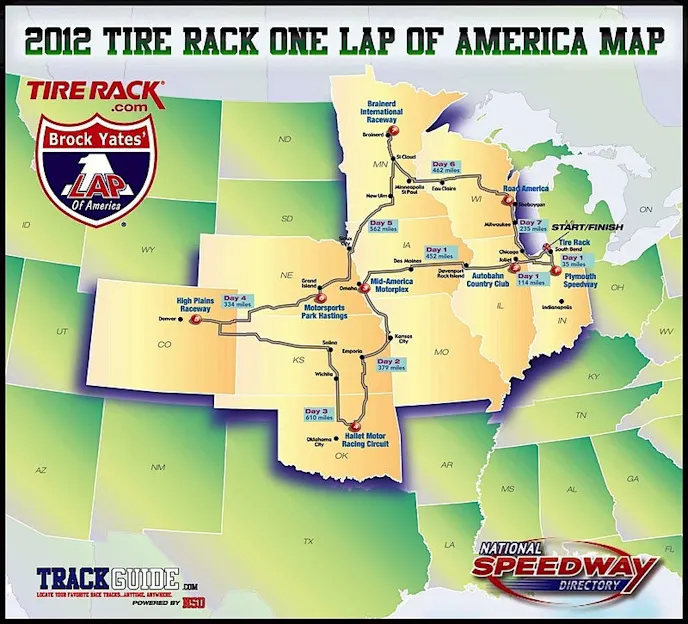 We apologize for being a bit tardy on this one since it’s already begun but on Saturday, May 5th, the Tire Rack One Lap of America kicked off in South Bend, Indiana. Over the course of the following eight days, this automotive marathon will cover cross-coutnry distance and hit up 21 different race tracks from across the country.