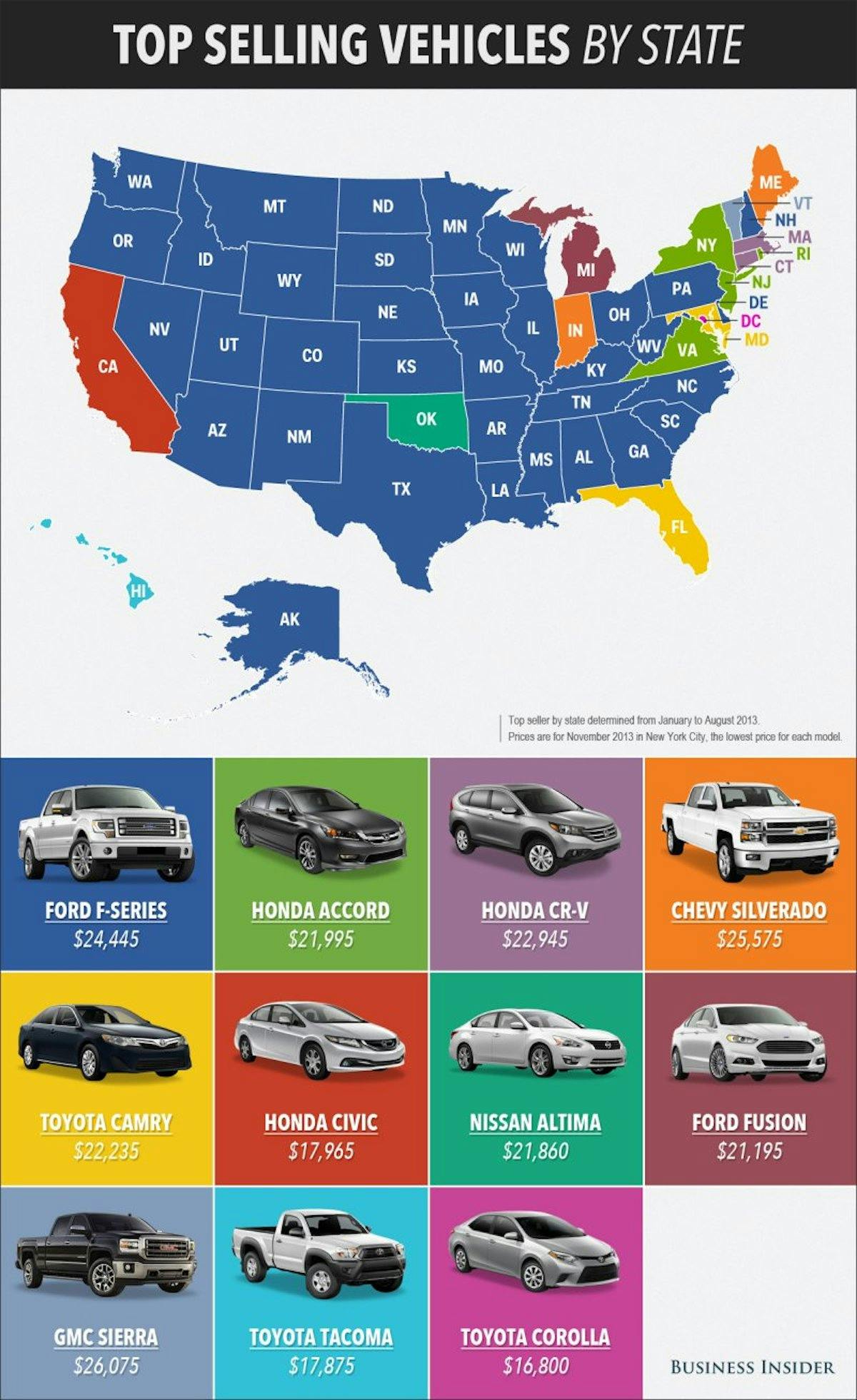 That’s right, Chevy is back on top. King of the hill, Leader of the pack, Top of the food chain. Well, at least in two states they are. According to Business Insider the Chevy Silverado was the best selling vehicle in Indiana and Maine from January till August 2013. The GMC Sierra was able to win over only a single state,Vermont.