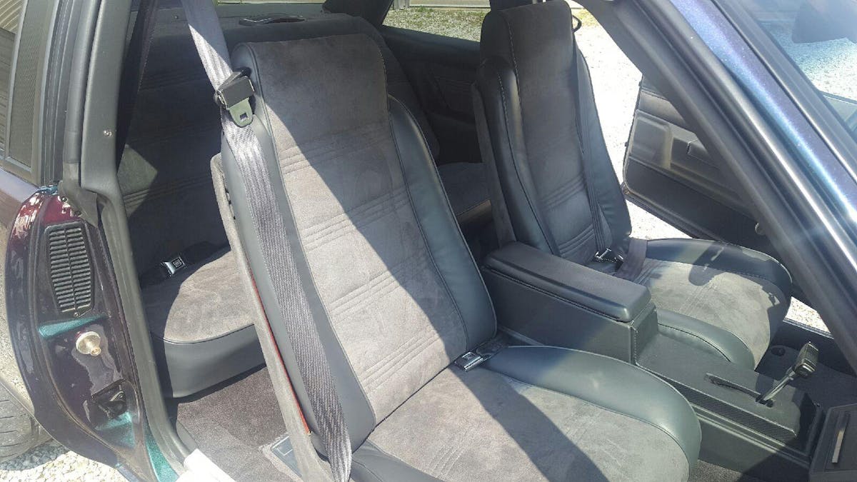 For the car’s interior, the former burgundy faux crushed velvet was ditch in favor of charcoal leather and suede throughout. The stock seats where retained, but the use of higher end materials really help to modernize the interior and give it a look that people other than your grandparents can appreciate.