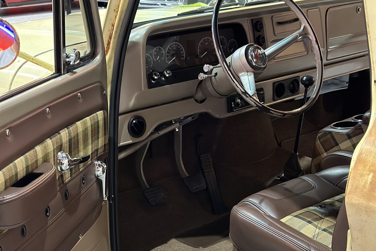 The TMI interior combination of dark brown vinyl seats, center console, and door panels featuring plaid inserts really topped it off. Parker Slates, C10 Owner