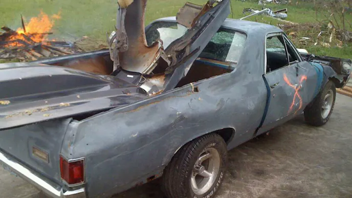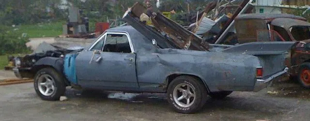 Sifting through the rubble rescue workers stumbled upon a ’72 El Camino belonging to Scottie Hackleman, a 25-year old construction worker who bought the car when he was a young lad of only 15 for $1500. Since that time, Mr. Hackleman built a 331cui displacement small block for it producing a claimed 500+hp, not once, but twice.