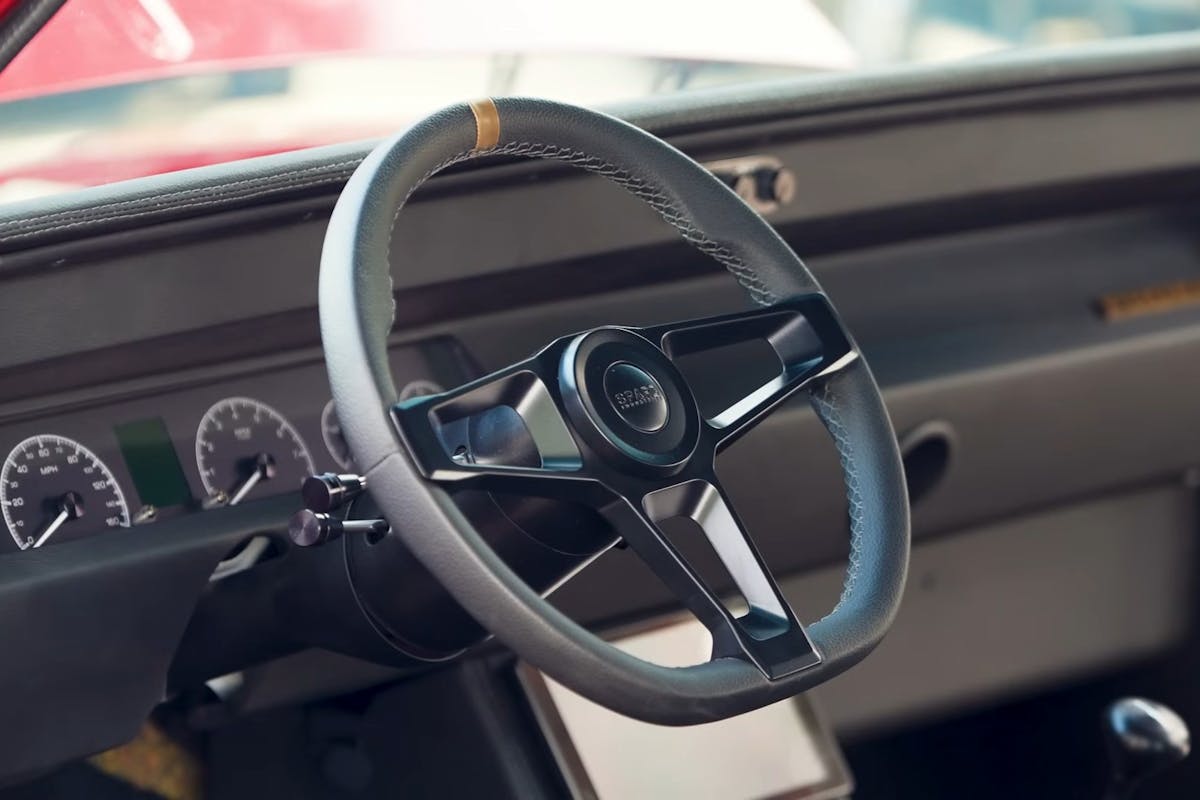 The team sharpened body creases, shaved the door handles, shaved the mirrors, flush-mounted the glass, and handmade the car’s slick rear bumper and taillight panel. Up front, custom billet hood vents provide a modern touch while helping manage engine temperatures.