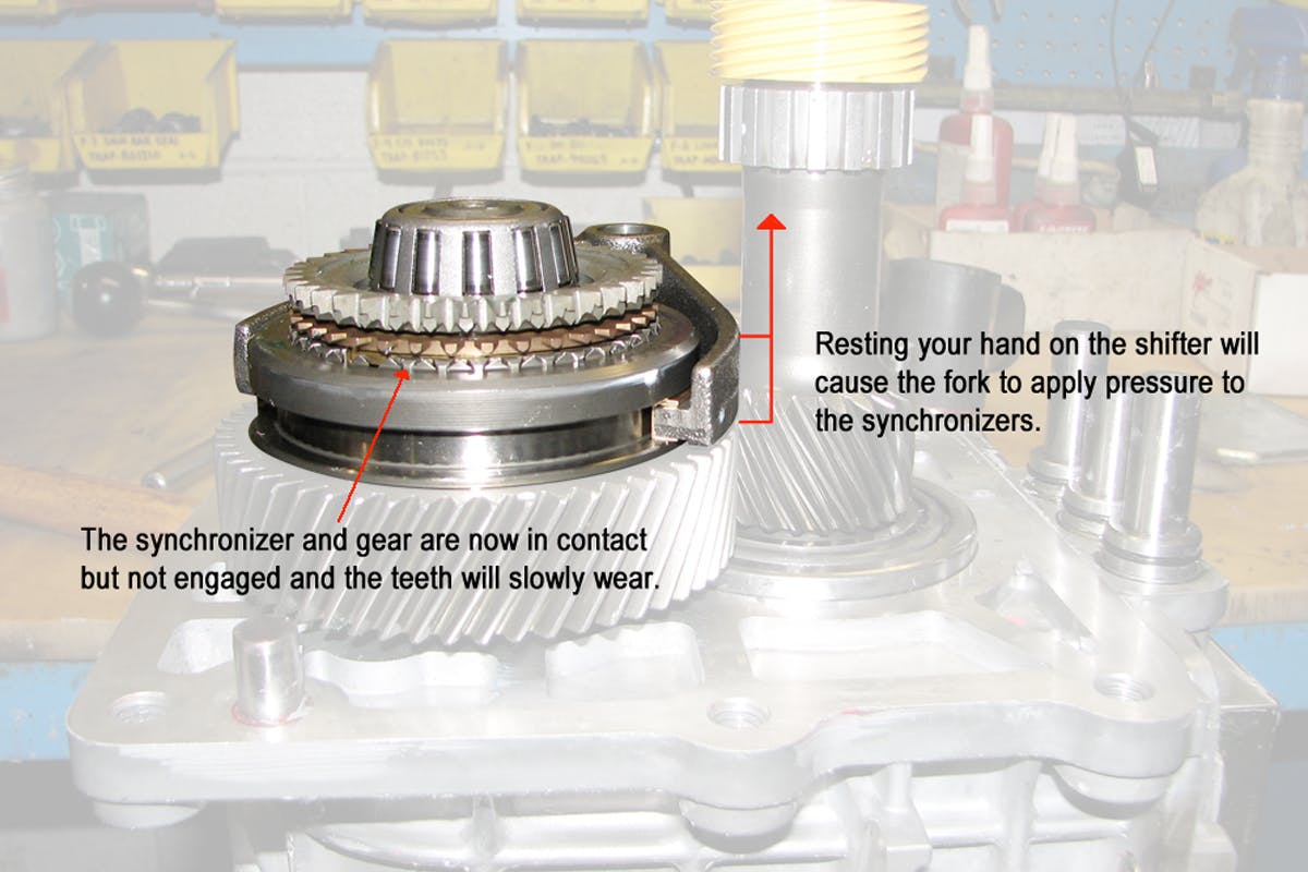The synchronizers don’t need to be engaged in order for them to come in contact with the gears, and resting your hand on the gearshift can cause the shift fork to apply just a little pressure to the synchronizers. For this reason, Silver Sport Transmissions suggests that you do not rest your hand on the shifter, and only grab the shifter when you’re ready to change gears.