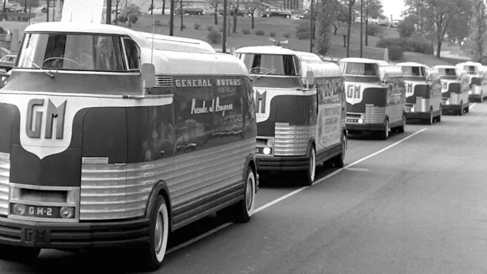 The Futurliners were custom vehicles that were designed by Harley Earl. The GM-sponsored Futurliners and the Parade of Progress began to caravan the country at the end of 1940, and continued into 1941. Unfortunately, after that, the parade was put on hold by the thrusting of the United States into World War II. When the first Parade started its caravan in Lakeland, Florida, on Feb. 11, 1936, by the time it ended in Pearl Harbor, Hawaii, the Parade had covered well over a million miles, and had visited 251 towns and cities in the United States, Canada, Mexico, and Cuba. An established count for attendance has some 12.5 million people listed as visiting the show.
