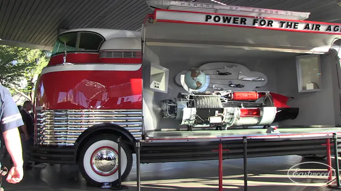 If you were one of those fortunate enough to have the Parade stop close to your town, when you arrived for the show, you would literally find what many called a spectacle. When the Parade of Progress would reach a given destination, there people/staff organizing the stopover would arranged the caravan of Futurliners around a large tent and an information kiosk. Since each Futurliner was constructed around a self-contained stage, each one was designed to display a particular subject. The highlighted displays “predicted” the future of jet engine technology, agriculture, traffic engineering, stereophonic sound, microwave ovens, television, and other innovations. At one time, one of the Futurliners even displayed a miniature automobile assembly line. The display was fittingly named A Car is Born.