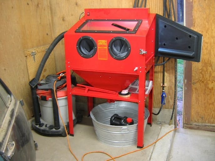 Sand blasters come in different sizes. The biggest is one that you would typically use outside, say if you were stripping an entire car. The ones we are talking about are bead blasting cabinets that go in a garage and require only an ample air supply. They range in size, so you’ll need to make sure you have the room in your garage. The only downside to them is that they can be rather big and take up space. But given the amount of time you can save with sanding and scraping, they are well worth the investment.