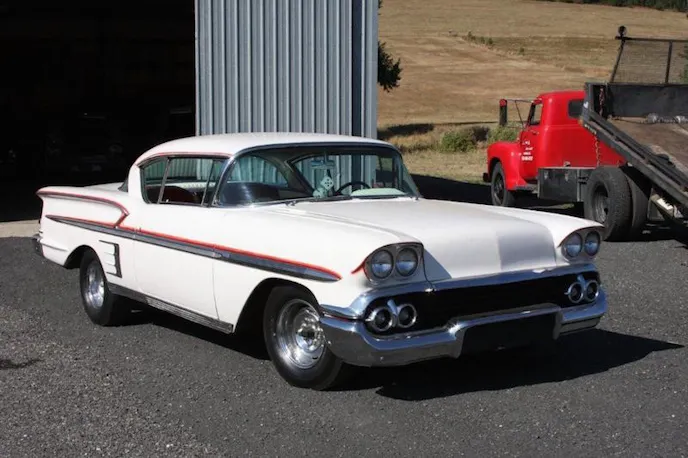 All photos from {link=https://www.xframechevy.com/the-real-american-graffiti-58-impala/}www.xframechevy.com{/link}