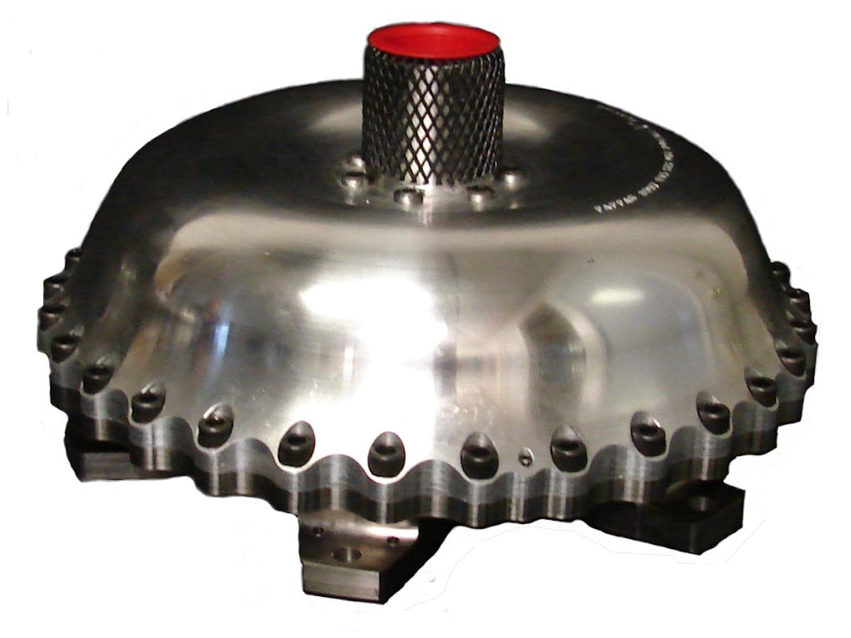 One of TCI’s lockup converters designed for use with the 6L80E transmission found behind many LS engines. It uses a fluid-activated clutch to assist in lockup.