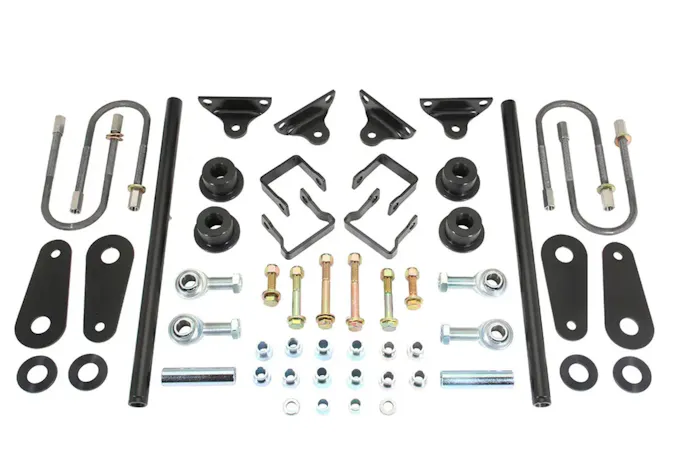 Both traction bar sets include an array of components that highlight CPP’s commitment to engineering excellence. Traction bar tabs, spring pivot tabs, spring straps, front and rear rod end spacers, black front spring bushings, zinc-plated pivot sleeves, and comprehensive mounting hardware all work together to transform suspension dynamics.