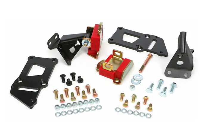 Trans-Dapt’s LS Swap Motor Mount Kit includes a pair of frame mount brackets, engine adapter plates, and is available with either rubber pads (Part Number #4199) or polyurethane pads (Part Number #4200). While the rubber pad kit will provide a smoother feel, the polyurethane pads will transfer more power to the wheels and last longer, with an average life expectancy of 8-10 years. These bolt-on kits installs easily with no welding required, and are compatible with the entire range of Chevrolet’s Generation III and IV LS engines.