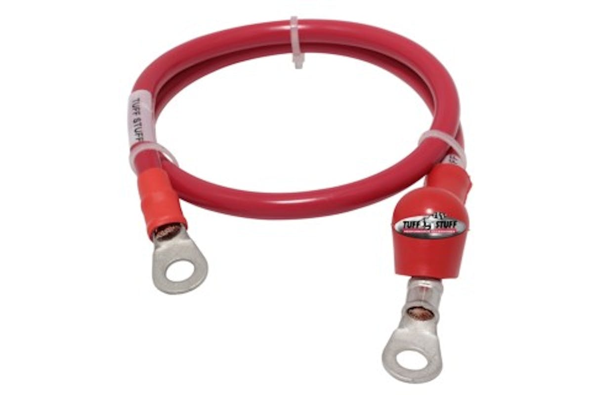 Tuff Stuff’s new 6-gauge alternator charge wire was released to the public in early October of 2021. It is currently available in four lengths and feature the finely stranded copper wire wrapped in a red plastic coating that Tuff Stuff is known for. “When switching to a high-amperage alternator, increasing the charge wire size is a must to get maximum amperage and to reduce the possibility of a fire,” said Tuff Stuff’s Mike Stasko. “These are quality made in the USA and have solid copper 5/16-inch ring terminals on both ends with heat-shrink terminal coverings and a red alternator terminal boot.”
