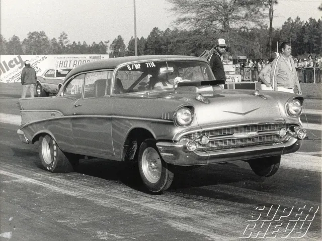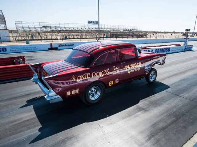 The song describes in no uncertain detail the greatness of the ’57 Chevy, as it conquers at the drag strip where “she places every week number one in her class.” Some of the better features described are the “two-eighty-three” engine, the Racemaster “slicks,” the locked rear end differential, and fuel injection. A fearsome estimated time of “ten-point-nine” gets us quaking in our boots as well.