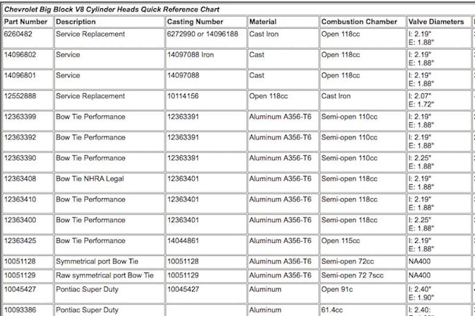 This chart shows how the casting numbers and parts number differ, but are tied to each other.